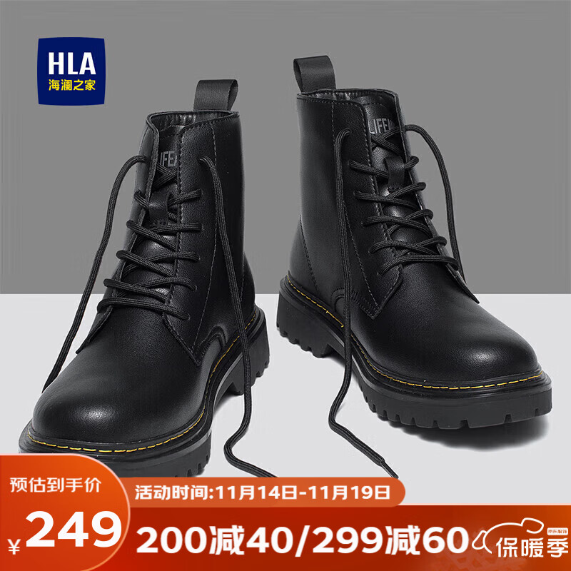 海澜之家HLA马丁靴男高帮黑色工装靴子男士靴子男HAAGZM4AAZ0181 黑色41