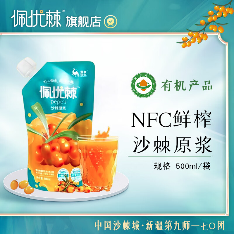 佩优棘丨佩佩沙棘 【有机】沙棘原浆新疆大果有机鲜果 生榨沙棘果纯原浆 沙棘原浆 500ml/袋