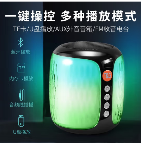 晓瞳 炫酷发光蓝牙音箱3d环绕家用户外重低音炮带七彩灯闪光无线便携式手拿小型音响迷你 H4417-03-发光蓝牙音箱TG611灰色