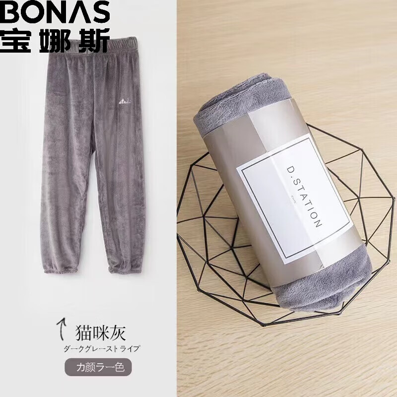 宝娜斯(BONAS)XT配饰居家暖暖裤保暖加厚仙女懒人暖暖裤时尚休 灰色 均码 80~140斤