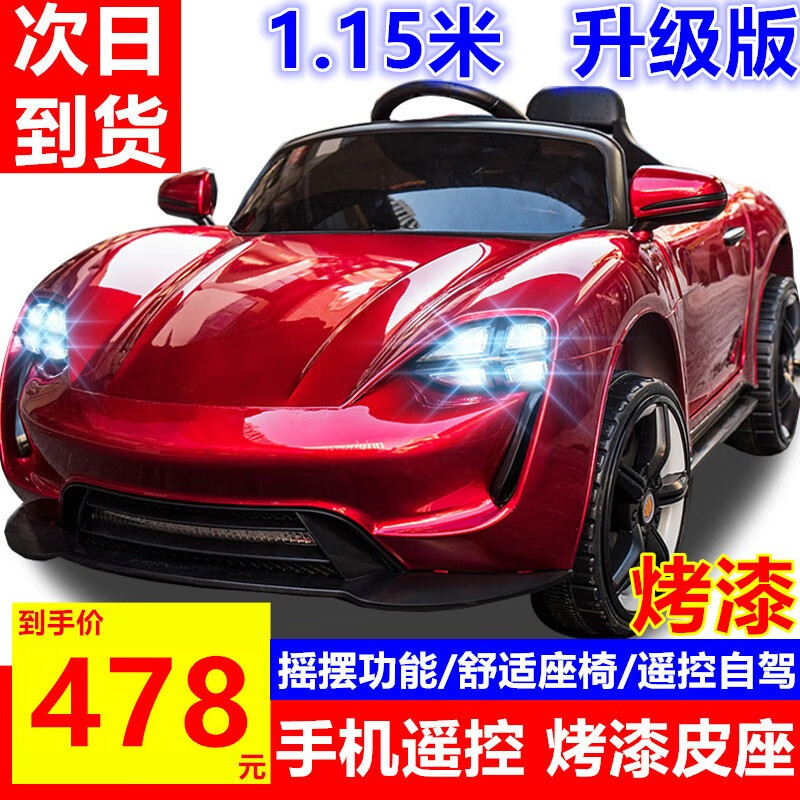 米蚁(MiYi)【1.15米加长版】儿童电动车四轮汽车可坐人遥控小孩宝宝玩具童车 四驱烤红+大电瓶+手机遥控+软座