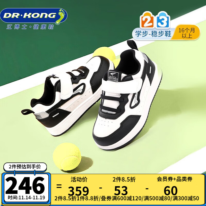江博士(DR·KONG)秋季简约潮流板鞋 男女儿童学步鞋 时尚休闲国货儿童运动鞋 白/黑 27码 适合脚长约16.2-16.8cm