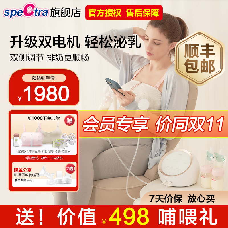 贝瑞克(spectra)贝瑞克吸奶器电动微震按摩双边吸乳器DS升级双电机大贝贝吸奶器 含双边配件(不可充电)