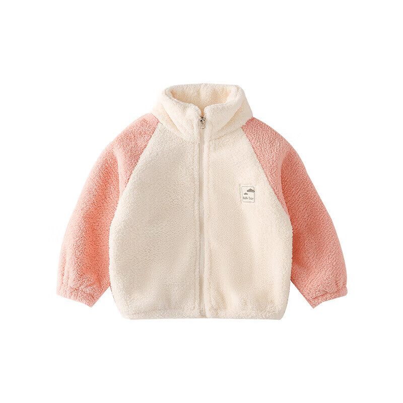 棉花堂儿童针织绒外套2023秋季新款休闲上衣宝宝柔软舒适保暖童装d 白拼粉 100cm