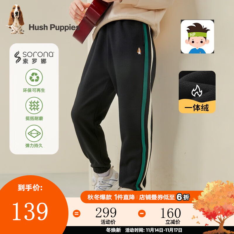 暇步士(Hush Puppies)童装儿童秋冬裤子男童2023年秋冬新款男大童简约保暖一体绒长裤 钻石黑 130cm