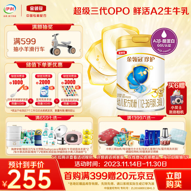 伊利金领冠 珍护系列 幼儿配方奶粉 3段 (1-3岁幼儿适用) 900g